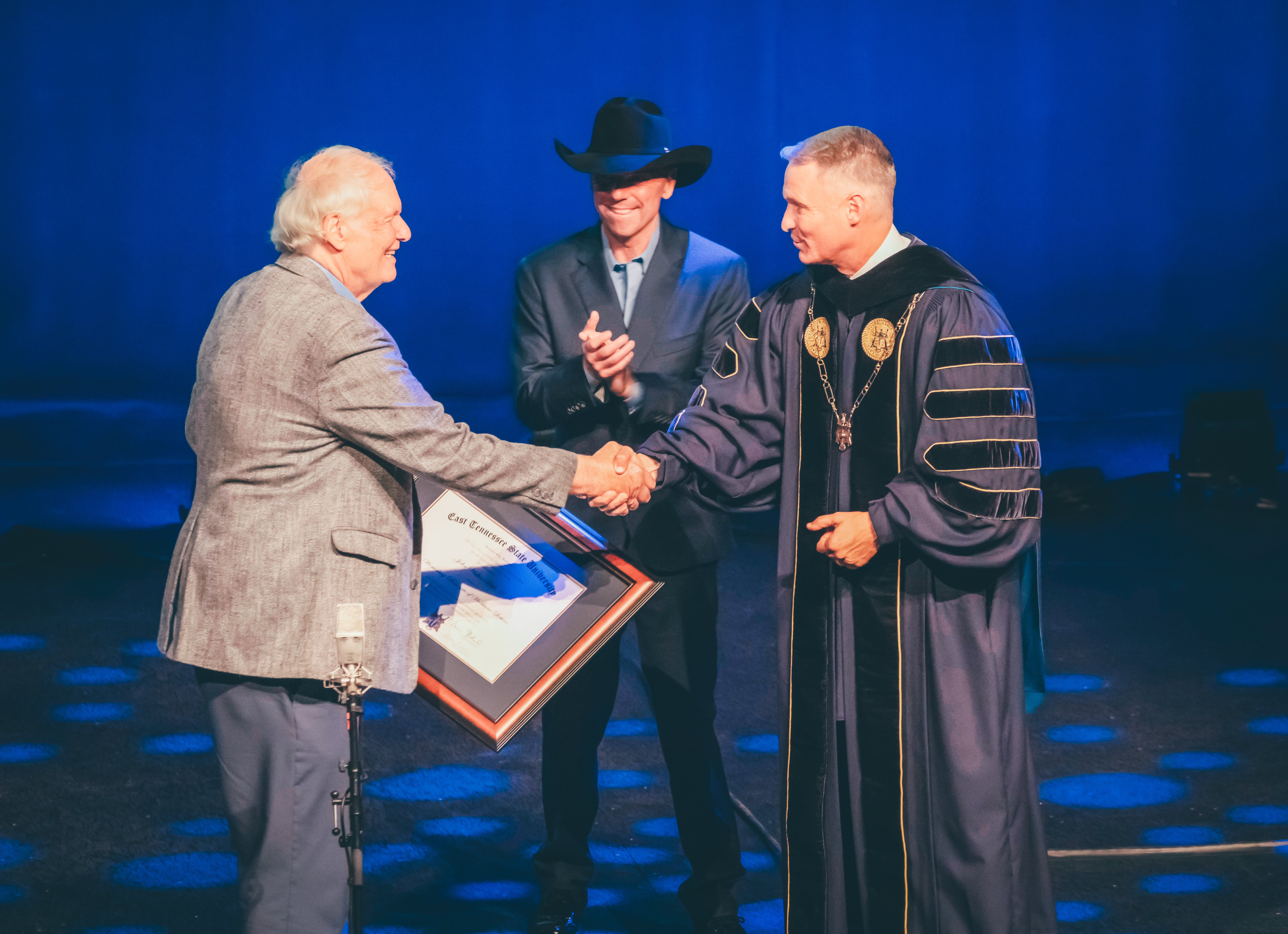 A 2022 concert celebrating the program’s 40th anniversary drew one of the program’s and university’s most famous graduates, Kenny Chesney, whom ETSU President Dr. Brian Noland awarded with an honorary doctorate.