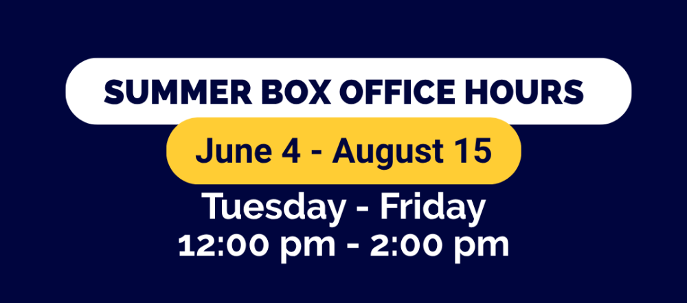 HOURS: Monday - Friday, 10:00 a.m. to 2:00 p.m. and 1 hour prior to ticketed events